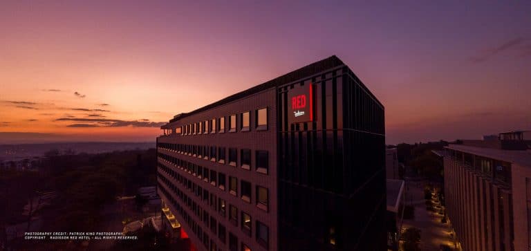 Radisson RED Rosebank is located in the new mixed-use Oxford Parks precinct on a prominent corner of one of Johannesburg’s most stylish urbanising locations. The 222-room hotel was designed to meet a client brief of being a substantial building that was architecturally sophisticated yet functional and would enhance the area’s appeal. Construction of South Africa’s second Radisson RED was completed in August 2021, using materials that were specified to be low in maintenance requirements but architecturally relevant to the hotel’s discerning guests and travellers.